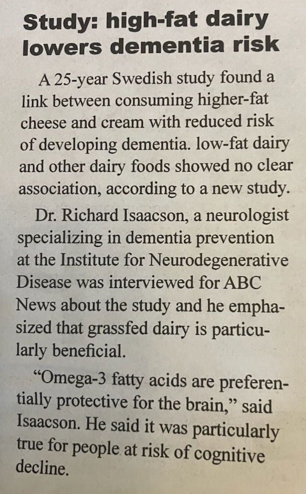 Study: High-Fat Dairy Lowers Dementia Risk